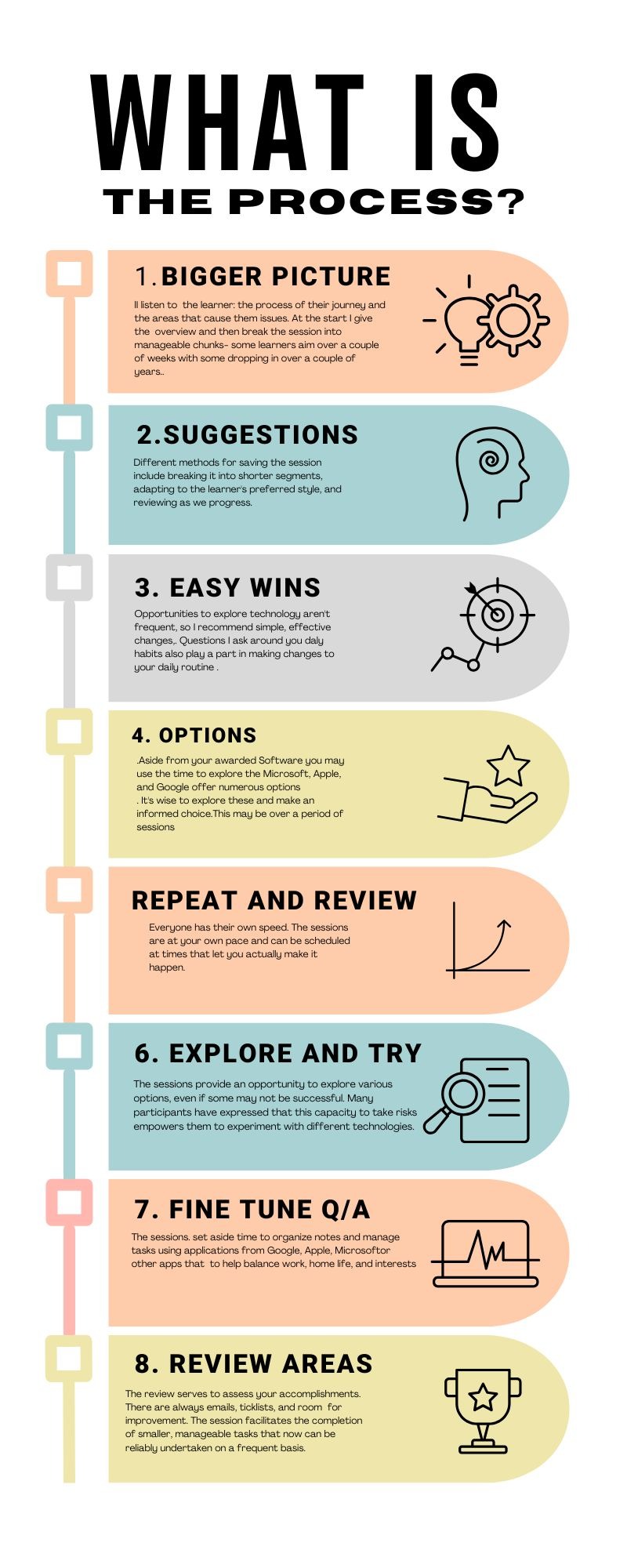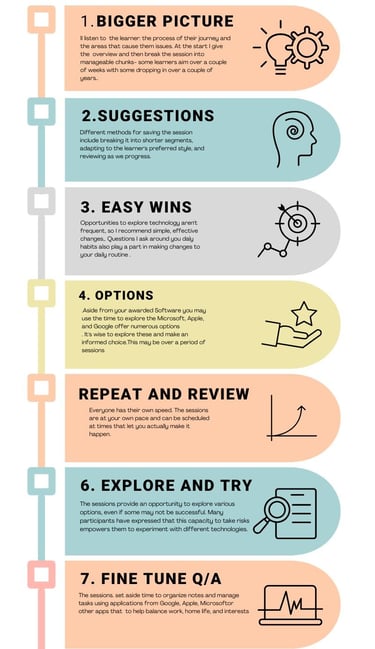 By repeating certain workflows with multiple software programs with David, I was able to remember and use those software programs better. The software-per-session approach allowed me to understand the whole program and all of its aspects on how I could apply it to my daily habits."